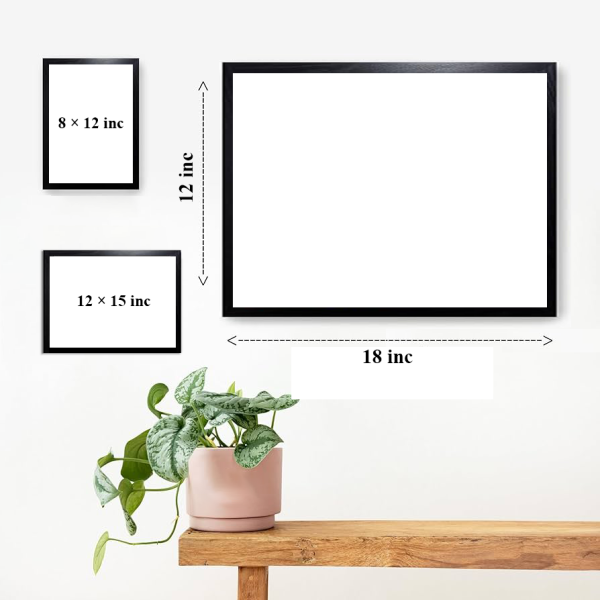 Choose from 3 sizes: 8 × 12 in, 12 × 15 in and 12 × 18 in. Designed to make your photos stand out, these frames add a timeless touch of elegance to any space.